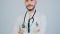 白いベッドの上で、自分を守るように座り、心を休めている女性の姿
